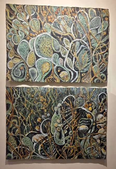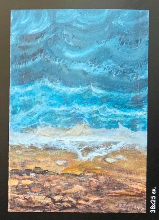 Η θάλασσα, τα βράχια, τα άνθη, ο βυθός είναι τα θέματα, που την εμπνέουν και παρουσιάζονται στην έκθεση, όλα έργα, που φιλοτεχνήθηκαν το 2025.