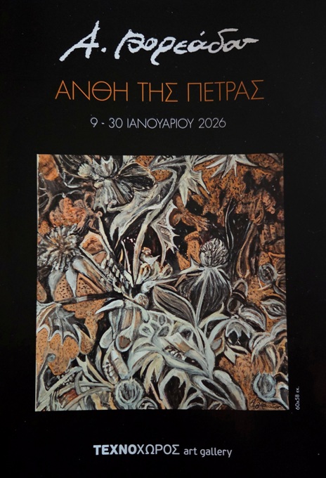 Η Αγγέλα Βορεάδου εκθέτει τα Άνθη της πέτρας στην Γκαλερί “Τεχνοχώρος” (Λεμπέση 12, Ακρόπολη, 11742, τηλ. 211-1823818) από 9 έως 30 Ιανουαρίου 2026.