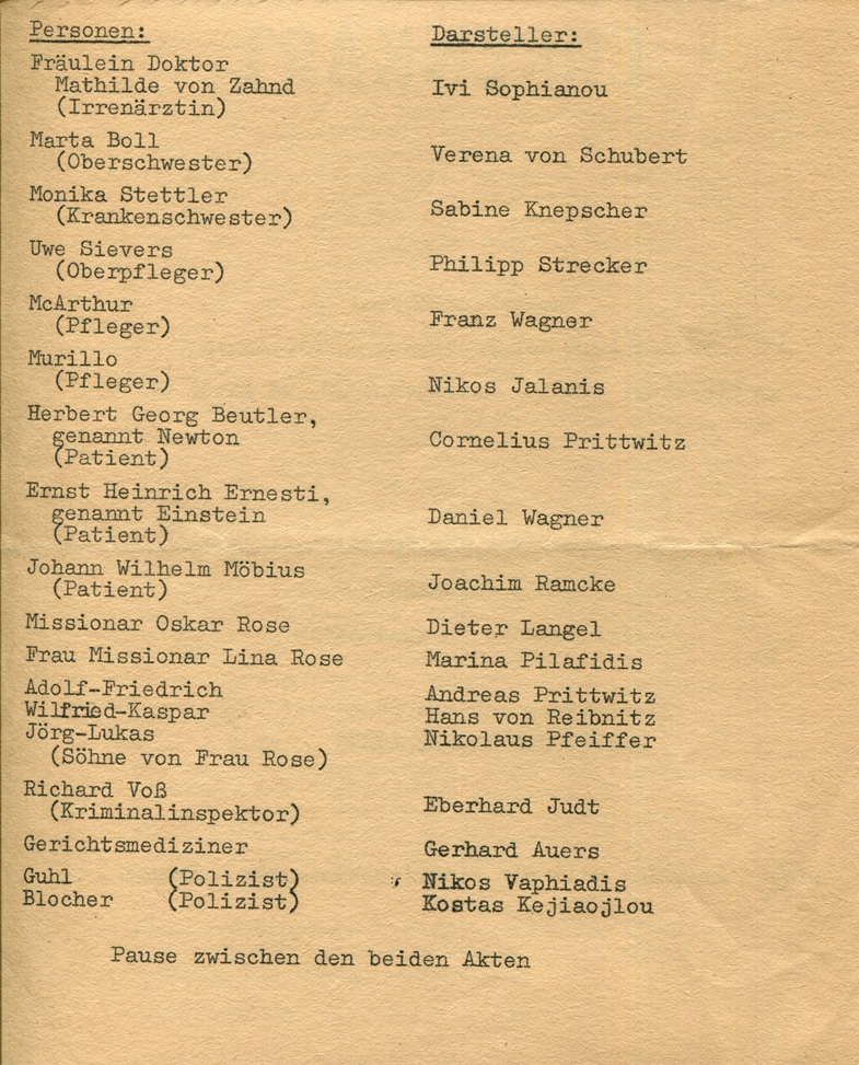 Die Physiker του Friedrich Dürrenmatt από το αρχείο του Gerd Hermjacob