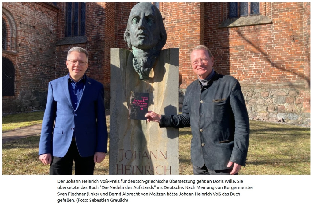 Την Κυριακή 29.3.2026 πραγματοποιήθηκε η απονομή του Βραβείου Μετάφρασης του Ιδρύματος Johann-Heinrich-Voß. Η ημερομηνία αναβλήθηκε κατά έξι μήνες, προκειμένου να τιμηθεί η 200ή επέτειος από τον θάνατο του Voß, του μεταφραστή της Ιλιάδας και της Οδύσσειας.