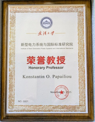 Στις 20 Νοεμβρίου απονεμήθηκε στον πρόεδρο τηw διεθνούς CIGRE (www.cigre.org) Κώστα Παπαηλιού (τάξη του ’63) ο τίτλος του Επίτιμου Καθηγητή από το γνωστό Πανεπιστήμιο του Wuhan, κατόπιν αποφάσεως των αρμόδιων ακαδημαϊκών οργάνων, ως αναγνώριση της μακροχρόνιας επιστημονικής του προσφοράς και της ουσιαστικής συμβολής του στη διεθνή διάδοση τεχνικής γνώσης στον τομέα των ηλεκτρικών συστημάτων ισχύος. Στο πλαίσιο της επίσκεψής του παρουσιάστηκε επίσης η κινεζική έκδοση του διεθνούς αναγνωρισμένου βιβλίου του για εναέριες γραμμές μεταφοράς (https://link.springer.com/