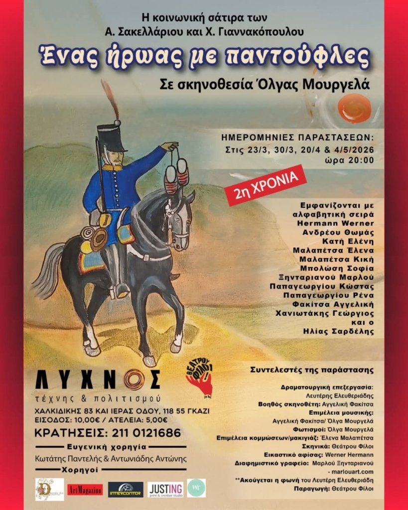 Παραστάσεις: 23/3, 30/3, 20/4 και 4/5/2026, ώρα 20.00