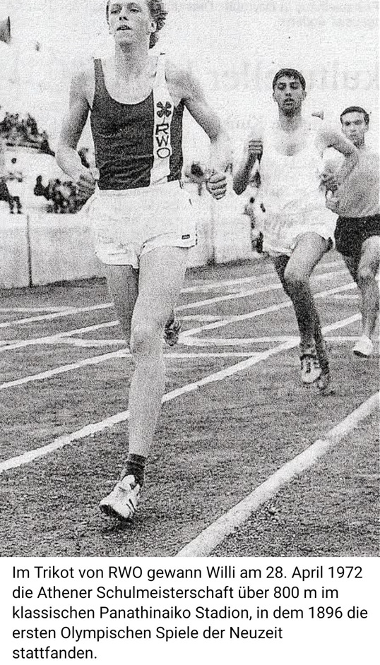 Weil es seinen Vater als Monteur bei Mannesmann nach Stationen in Ägypten und Libyen für ein Jahr nach Griechenland verschlug, war Willi 1971 seinen Eltern in die Metropole der Antike gefolgt. Dort besuchte er die Deutsche Schule. Wichtiger für seinen späteren Werdegang aber: Während seines Aufenthalts wurde Evangelos Depastas auf ihn aufmerksam, der in den 1950-er und 1960-er Jahren ein Konkurrent des erfolgreichen deutschen Mittelstrecklers und späteren Bundestrainers Paul Schmid war. Unter den Fittichen seines griechischen Trainers im Panioniou Club, der unweit der elterlichen Wohnung lag, steigerte der 17-jährige Pennäler seine Bestzeit auf erstaunliche 1:51,2 Minuten. „Ich glaube“, sagte Willi einmal, „damals habe ich erstmals erkannt, dass ich über gewisse Qualitäten verfüge.“