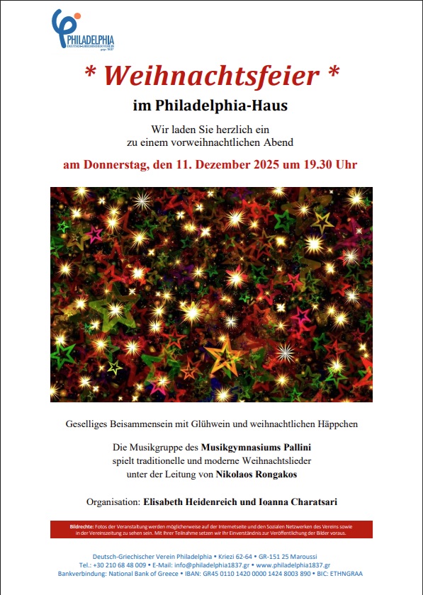 Die Musikgruppe des Musikgymnasiums Pallini spielt traditionelle und moderne Weihnachtslieder unter der Leitung von Nikolaos Rongakos