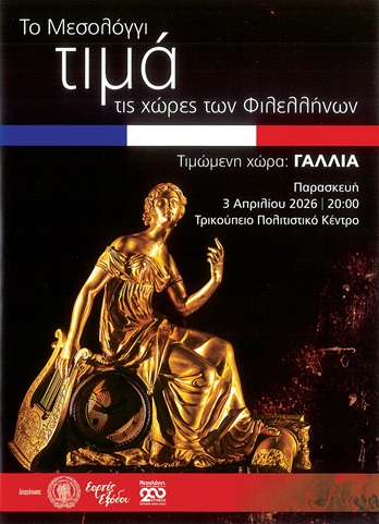 Την Παρασκευή 3 Απριλίου 2026 στο Τρικούπειο Πολιτιστικό Κέντρο το Μεσολόγγι τίμησε την Γαλλία στο πλάισιο της σειράς εορτασμών με τίτλο