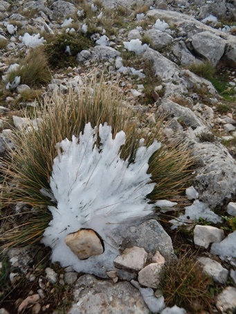 Νάσου και δύο εθελοντές του ΠΟΑ που συντηρούν το καταφύγιο, γίναμε πέντε. Καλά παιδιά, έμπειροι ορειβάτες.Έχει νυχτώσει και είμαστε τέζα. Το πλάι της σκηνής πλαταγίζει απ’τον αέρα. Κοιμηθήκαμε σαν αρνάκια ως το πρωί.