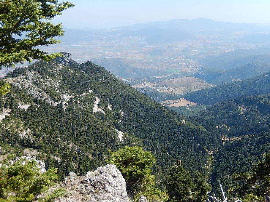 Το ρέμα της Βελίτσας στεγνό. Απότομες, σχεδόν κάθετες πλαγιές από παντού. Παλιός νερόμυλος. Το μονοπάτι σαν φίδι βρίσκει μέρος να σκαρφαλώση την απέναντι κλιτύ. Επάνω άπλωμα, ακούω νερά. Είναι τσιμεντένιο λούκι, το υδραγωγείο της Τιθορέας. Φτάνω στον ΑηΓιάννη στα έλατα. Ώρα 10. Τραπέζια πικ νικ, νερό. Αρχίζει ανηφόρα μέσα στο δάσος. Πάντα με κόκκινα τεράγωνα. Απέναντι, στην σειρά, κορυφές του Παρνασσού φωτισμένες. Ψάχνω ΤΗΝ κορυφή. Οι Τσούμες απέναντι να φαίνονται;