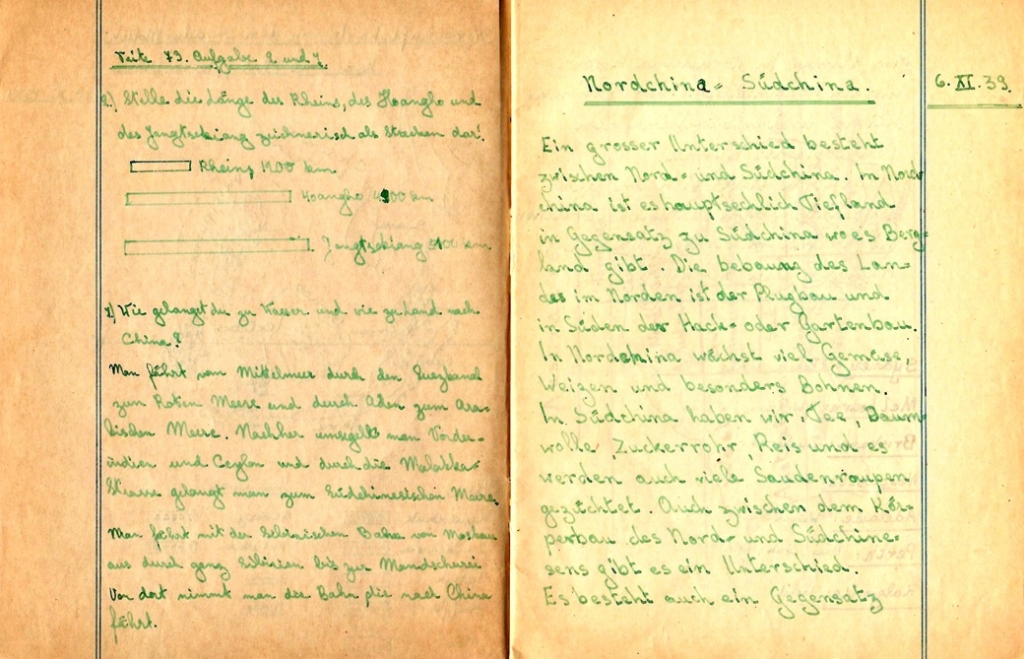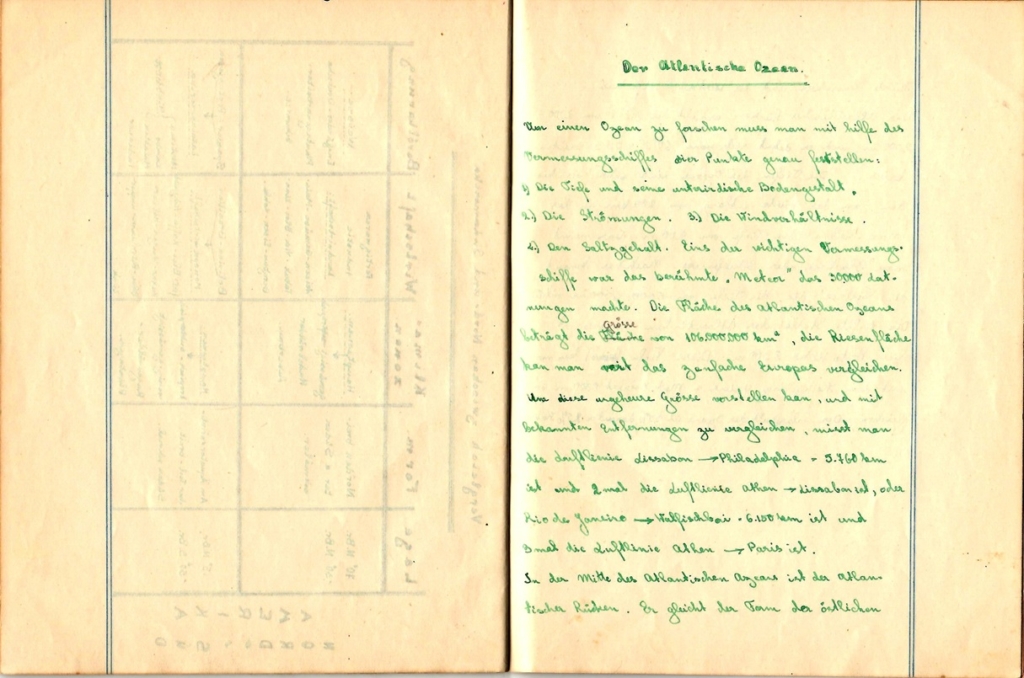 Η κόρη της, Αμαλία Παναγιωτοπούλου, φύλαξε ένα τετράδιο Γεωγραφίας εκείνων των χρόνων.
