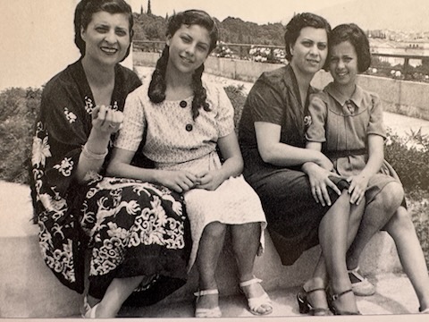 η μητέρα, Μαρούλα Κωνσταντοπούλου, η Αλίκη, η θεία Μαργαρίτα (αδελφή της Μαρούλας) και η Πηνελόπη (πηγή: Μαρί Λουίζ Νικολαΐδη, κόρη της Αλίκης Περρωτή Κωνσταντοπούλου)